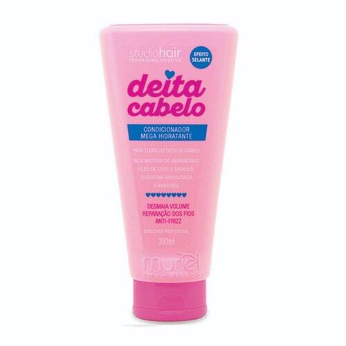 Muriel Studio Hair Deita Cabelo Condicionador 300ml DESCRIÇÃO: Migaaa!!! Pense num produto Turbinado!!! É isso que o Condicionador Studio Hair Mega Hidratante Deita Cabelo representa. Perceba o perfume que ficou no seu banheiro após lavar os cabelos com o shampoo Studio Hair Mega Hidratante Deita CabeloAÇÃO/ATIVOS: O Condicionador Studio Hair Mega Hidratante Deita Cabelo que possui, de forma ainda mais concentrada, os mesmos nutrientes encontrados no shampoo, mais os óleos de girassol e coco que garantirão a emoliência aos cabelos que você necessita. O Condicionador Studio Hair Mega Hidratante Deita Cabelo irá agir com mais eficiência, pois as cutículas dos cabelos estão livres de impurezas e aptas a receber os nutrientes. Também vai desembaraçar os fios, deixando-os sedosos, macios e brilhantes, graças a sua grande capacidade de emoliência.MODO DE USAR: Aplique o condicionador nos cabelos molhados, massageando-os. Enxágue completamente.ESTE ANÚNCIO CONTÉM: 01 Muriel Studio Hair Deita Cabelo Condicionador 300mlMuriel Studio Hair Deita Cabelo Condicionador 300ml Marca: Muriel Cera