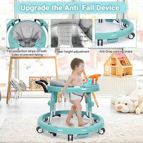 O andador dobrável Baby Walker pode ajudar o bebê a aprender a andar livremente. Liberando as mãos da mãe. Por que escolher nossos caminhantes? 1. Este andador de bebê é feito de plástico PP ecológico e a estrutura é um tubo de alumínio espessado, que tem boa capacidade de carga. 2. Nossos andadores de bebê para meninos e meninas têm 9 modos de ajuste de marcha, incluindo 5 ajustes de marchas para o corpo e 4 ajustes de marchas para o assento. Roda universal grande de 3, 6 × 2 “", multidireção inteligente, para que o bebê possa se mover livremente em 360°. Por favor, observe! Para a segurança de seu bebê, não deixe seu bebê usar este produto sozinho e certifique-se de usá-lo sob os cuidados dos pais. Desejo que seu filho aprenda a andar o mais rápido possível e tenha uma vida feliz! Nota: O andador com roletes não pode se mover sobre o cobertor.