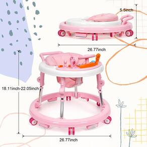 - [Armazenamento dobrável]: os andadores para bebês podem ser facilmente dobrados e instalados sem ferramentas. Ao mesmo tempo, o andador portátil para bebês é pequeno e fácil de transportar e armazenar. Tamanho da expansão: 25,2"(L)* 18,11"(W) *"15,75-18,5" (H) para crianças de 7 a 18 meses de idade. Tamanho dobrado: 25,2 “(L)* 3,94" (H). Por favor, confirme a altura do bebê antes da compra. Ele pode suportar um bebê de 30 libras.