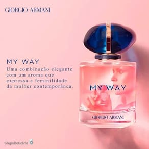 O Perfume My Way Giorgio Armani apresenta um aroma que expressa a feminilidade em torno da mulher curiosa, independente e inteligente. Uma combinação elegante, com notas de cedro, jasmim, flor de laranjeira, almíscar branco, baunilha de madagascar, bergamota e tuberosa, perfeita para todos os estilos em idades diversas.