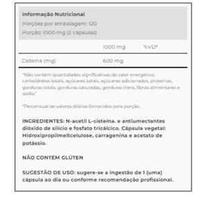 Nac 120 Cápsulas - Ocean Drop Composição do Anúncio 1x- nac 120 Cápsulas - Ocean Drop Descrição do Anúncio A N-, conhecida como NAC, é um suplemento valorizado por suas múltiplas ações. Como precursora da glutationa, uma substância antioxidante, estudos revelam que o NAC pode ajudar na neutralização de radicais livres e na redução do oxidativo. Radicais livres são moléculas instáveis que podem causar danos às células, contribuindo para o envelhecimento precoce e para o desenvolvimento de doenças crônicas. Ao estimular a produção de glutationa, o NAC pode contribuir para a integridade das células, ajudando a manter o equilíbrio redox. O NAC N- é obtido a partir da cisteína, um aminoácido que desempenha um papel fundamental na síntese de proteínas. A como , se destaca por sua ação mucolítica, originalmente utilizado na forma de xarope para condições que envolvem produção excessiva de muco e problemas respiratórios. Já o suplemento de N- NAC , se destaca por sua atuação como precursor da glutationa, que é uma substância que age como antioxidante. Quando o corpo carece de antioxidantes, os radicais livres podem danificar as células saudáveis. Em resumo, o NAC é uma substância versátil que desempenha um papel relevante, graças à sua origem na cisteína e sua contribuição como precursor da glutationa. Quem pode consumir o NAC O n- NAC pode ser consumido por adultos que buscam os seus benefícios. Trata-se de um suplemento que é frequentemente procurado pela ação antioxidante e condições que envolvem excesso de muco. No entanto, há algumas exceções e precauções: Pessoas com asma: pessoas com asma devem consultar um médico antes de usar. Interações medicamentosas: o NAC pode interagir com medicamentos, especialmente com nitroglicerina e outros vasodilatadores. Condições de saúde específicas: pessoas com problemas renais ou hepáticos devem usar o NAC sob supervisão médica. Alergias ao NAC: indivíduos com alergias conhecidas ao NAC ou seus componentes não devem tomar esse suplemento. Quando e como tomar o NAC O momento e a forma de tomar N- NAC podem variar com base nas necessidades individuais e objetivos de saúde. Aqui estão algumas instruções gerais para considerar ao tomar NAC: Dosagem recomendada: a dosagem recomendada de nac pode variar, geralmente oscilando entre 600 mg a 1200 mg por dia; Forma de suplemento: o NAC geralmente está disponível em forma de cápsulas ou comprimidos; Com ou sem alimentos: o NAC pode ser tomado com ou sem alimentos, dependendo da preferência pessoal. Algumas pessoas preferem tomar com uma refeição para evitar desconforto estomacal, enquanto outras o tomam com o estômago vazio; Horário: o NAC pode ser dividido em doses ao longo do dia ou tomado de uma vez, dependendo das necessidades individuais. Algumas pessoas preferem tomar uma dose pela manhã e outra à noite; Objetivos de saúde: o momento de tomar NAC pode variar com base nos objetivos de saúde; Consulte um : sempre é aconselhável consultar um de saúde antes de iniciar a suplementação com NAC . Eles podem fornecer orientações específicas com base em suas necessidades individuais e estado de saúde. Lembrando que a dosagem e o momento de tomar NAC podem variar, e é importante seguir as orientações específicas fornecidas pelo seu de saúde ou fabricante do suplemento. Marca: Não Informado Ean: 7898972147181
