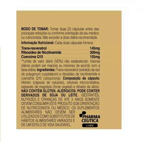 Ingredientes: trans-resveratrol extraído da raíz de polygonum cuspidatum e ribosídeo de nicotinamida.