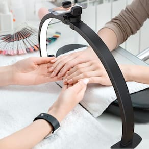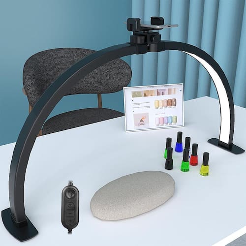 - Luz de meia lua com suporte de telefone: a luz de meia-lua de 73,7 cm para mesa de unhas adota um design de arco exclusivo. Equipado com um suporte para celular, você pode gravar belos momentos e compartilhá-los em plataformas sociais. Também pode ser dobrada e armazenada sem ocupar muito espaço.