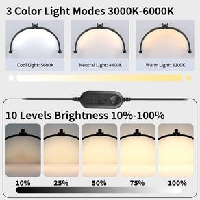 - Vários modos de cor e brilho: com 10 níveis reguláveis (10% - 100%) e 3 temperaturas de cor (3000-6500K), a lâmpada de mesa para escritório casa cria 50 combinações de iluminação, permitindo que você personalize o ambiente de iluminação ao seu gosto. A lâmpada de meia-lua tem uma função de memória e manterá o modo anterior quando for acesa novamente.