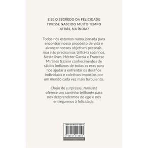 E SE O SEGREDO DA FELICIDADE TIVESSE NASCIDO MUITO TEMPO ATRÁS, NA ÍNDIA? Todos nós estamos numa jornada para encontrar nosso propósito de vida e alcançar nossos objetivos pessoais, mas não precisamos trilhá-la sozinhos. Neste livro, Héctor García e Francesc Miralles trazem conhecimentos de sábios indianos de todas as eras para nos ajudar a enfrentar os desafios individuais e coletivos impostos por um mundo cada vez mais turbulento. Cheio de surpresas, Namastê oferece um caminho brilhante para nos desprendermos do ego e nos entregarmos à felicidade.