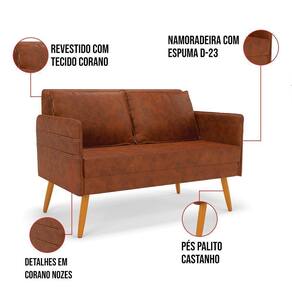 Que tal a Namoradeira Mari? Imagine-se utilizando esse produto e usufruindo de todos os benefícios que ela oferece. Usar essa Namoradeira é bem simples! Pode ser utilizada para evidenciar e enriquecer o seu ambiente, descansar depois de um dia longo de trabalho, ver aquela série favorita ou simplesmente ler seu livro predileto. Sua estrutura é confeccionada em madeira de eucalipto proveniente de reflorestamento, suportando em média até 120 Kg, possuí Pés Palito Castanho, garantindo uma maior resistência e durabilidade ao produto, o estofamento do assento e encosto é composto de espuma D-23, revestido em tecido Corano. Então, se a sua dificuldade é a otimização de espaço, esta namoradeira além de confortável e sofisticada, traz toda a funcionalidade que você precisa. Apenas algumas unidades estão disponíveis, separe o sua Namoradeira Mari antes que acabem!