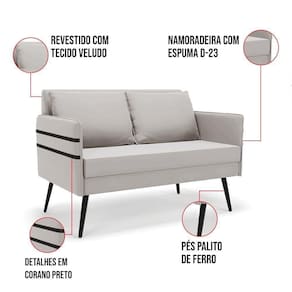 Que tal a Namoradeira Mari? Imagine-se utilizando esse produto e usufruindo de todos os benefícios que ela oferece. Usar essa Namoradeira é bem simples! Pode ser utilizada para evidenciar e enriquecer o seu ambiente, descansar depois de um dia longo de trabalho, ver aquela série favorita ou simplesmente ler seu livro predileto. Sua estrutura é confeccionada em madeira de eucalipto proveniente de reflorestamento, suportando em média até 120 Kg, possuí Pés Palito de Ferro, garantindo uma maior resistência e durabilidade ao produto, o estofamento do assento e encosto é composto de espuma D-23, revestido em tecido Veludo no tom Cinza. Então, se a sua dificuldade é a otimização de espaço, esta namoradeira além de confortável e sofisticada, traz toda a funcionalidade que você precisa. Apenas algumas unidades estão disponíveis, separe o sua Namoradeira Mari antes que acabem! Dimensões da Namoradeira: Altura total: 82 cm Largura total: 110 cm Profundidade total: 74 cm Altura do encosto: 35 cm Largura do assento: 104 cm Profundidade do assento: 57 cm Altura do chão ao assento: 47 cm Espessura do assento: 22 cm Altura do chão ao braço: 46 cm Altura interna do braço: 19 cm Tamanho dos pés: 25 cm Espessura do braço: 4 cm Peso: 20 kg Dimensões da Almofada: Altura total: 34 cm Largura total: 51 cm Profundidade total: 20 cm Peso: 0,3 kg Especificações do Produto Estrutura: Madeira Eucalipto Espuma: D-23 Tecido: Veludo Tipo de pés: Pés Palito de Ferro Peso suportado: Até 120 Kg Garantia: 90 dias contra defeito de fabricação Montagem: O produto vai montado, apenas rosquear os pés Instruções de limpeza: Utilizar um pano limpo e levemente úmido Você irá receber: 01 Volume com 01 Namoradeira Observações Relevantes - Todos os produtos vão embalados com total segurança; - As cores dos produtos podem sofrer alterações dependendo do seu monitor; - Para futuras compras, não garantimos a mesma tonalidade de cor, pois existe variação a cada lote do fabricante do tecido; - As imagens são meramente ilustrativas, não acompanham objetos de decoração e eletros; - Confira as dimensões do produto no momento da compra e certifique-se de que passará normalmente por escadas, elevadores, portas e corredores; - Importante: Por se tratar de estofado as medidas podem ter uma pequena variação em até 3 cm; - Não nos responsabilizamos no ato da entrega por montagens, desmontagens, instalações de produtos; - Não nos responsabilizamos no ato da entrega por subir escadas, elevadores, nem utilização de guinchos ou equipamentos similares para acesso a pisos superiores em apartamentos; - A entrega do produto é realizada em todo território nacional, até onde as rodovias alcançam, entregas fluviais ou aéreas devem ser cotadas a parte; - Observando as orientações acima, evita-se futuros desagrados ou imprevistos com a entrega do produto. Havendo despesas adicionais, serão de responsabilidade do cliente;