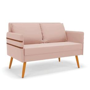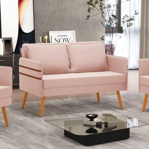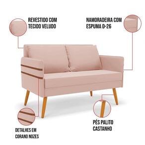 Namoradeira 02 Lugares Mari Veludo Rosê Pés Palito Castanho D03 - D'rossi