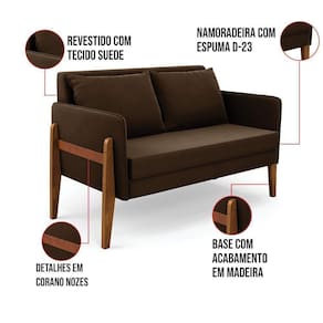 Namoradeira 2 Lugares Lana Suede Base De Madeira - D`rossi Cor Marrom