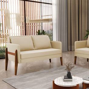 Namoradeira 2 Lugares Lana Suede Base de Madeira - D`Rossi - Bege