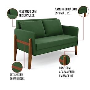 Ter uma casa com móveis de qualidade e que dure por anos é o sonho de qualquer pessoa. Afinal, quem não gosta de estar em um ambiente que transmita a sensação de acolhimento não é mesmo? Com a Namoradeira Lana, você consegue levar aconchego e leveza a qualquer ambiente. A estrutura é confeccionada em madeira de eucalipto proveniente de reflorestamento, suportando em média até 120 Kg, garantindo uma maior resistência e durabilidade ao produto, revestida em tecido Suede no tom Verde, o estofamento do assento e encosto é composto de espuma D-23, na lateral vem com uma tira de corano, que dá um charme todo especial ao produto. Olha só que legal, as almofadas soltas além de serem totalmente confortáveis e extremamente macias, dão a opção de mudar a cara do ambiente quando quiser. Então, que tal aproveitar a nossa super novidade? Aproveite!