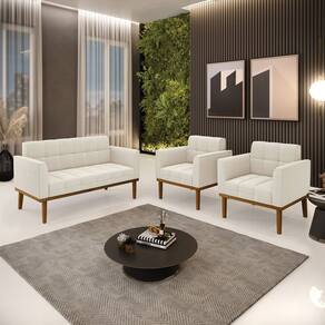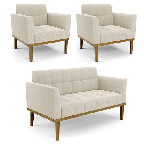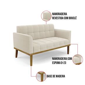O Sofá Namoradeira e 2 Poltronas Elisa é uma mobília que combina elegância, conforto e durabilidade. Ele tem um design retrô e sofisticado, com Base de Madeira Fixa Castanho e revestimento em tecido Bouclê Bege, que harmonizam com qualquer ambiente. Ele é ideal para sala de estar, recepções, escritórios, cozinhas ou qualquer outro espaço que você queira decorar com estilo e bom gosto. Ele tem uma estrutura em madeira de reflorestamento eucalipto, que garante a resistência e a sustentabilidade do produto. Ele suporta até 180 kg de peso, podendo ser utilizada por pessoas de diferentes biotipos. Ele tem um acabamento reforçado e espuma de qualidade D23, que oferece maciez e aconchego. Ele contém detalhes de costura no encosto e assento, resultando em um acabamento impecável, conferindo muito mais valor e elegância ao produto. O Sofá Namoradeira e 2 Poltronas Elisa é um móvel de alta qualidade, beleza e funcionalidade. Ele é fácil de transportar, pois tem um peso leve e um tamanho compacto. O Sofá Namoradeira e 2 Poltronas Elisa é um produto que vai fazer a diferença na sua decoração e no seu bem-estar. Ele vai trazer charme, conforto e durabilidade para o seu ambiente. Aproveite essa oferta e leve para casa um Sofá Namoradeira e 2 Poltronas de qualidade por um preço incrível. Essa é a sua chance de ter um Sofá Namoradeira e 2 Poltronas maravilhoso por um preço imperdível. Corra e garanta o seu antes que acabe o estoque!