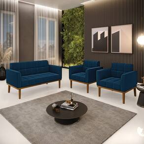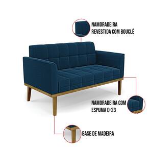 Namoradeira 2 Poltronas Base Madeira Fixa Cast Elisa Bouclê D03 - D`Rossi - Azul