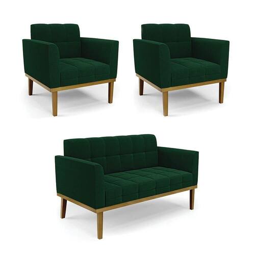 O Sofá Namoradeira e 2 Poltronas Elisa é uma mobília que combina elegância, conforto e durabilidade. Ele tem um design retrô e sofisticado, com Base de Madeira Fixa Castanho e revestimento em tecido Bouclê Verde, que harmonizam com qualquer ambiente. Ele é ideal para sala de estar, recepções, escritórios, cozinhas ou qualquer outro espaço que você queira decorar com estilo e bom gosto. Ele tem uma estrutura em madeira de reflorestamento eucalipto, que garante a resistência e a sustentabilidade do produto. Ele suporta até 180 kg de peso, podendo ser utilizada por pessoas de diferentes biotipos. Ele tem um acabamento reforçado e espuma de qualidade D23, que oferece maciez e aconchego. Ele contém detalhes de costura no encosto e assento, resultando em um acabamento impecável, conferindo muito mais valor e elegância ao produto. O Sofá Namoradeira e 2 Poltronas Elisa é um móvel de alta qualidade, beleza e funcionalidade. Ele é fácil de transportar, pois tem um peso leve e um tamanho compacto. O Sofá Namoradeira e 2 Poltronas Elisa é um produto que vai fazer a diferença na sua decoração e no seu bem-estar. Ele vai trazer charme, conforto e durabilidade para o seu ambiente. Aproveite essa oferta e leve para casa um Sofá Namoradeira e 2 Poltronas de qualidade por um preço incrível. Essa é a sua chance de ter um Sofá Namoradeira e 2 Poltronas maravilhoso por um preço imperdível. Corra e garanta o seu antes que acabe o estoque!