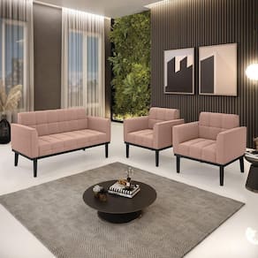 Namoradeira 2 Poltronas Base Madeira Fixa Pto Elisa Bouclê D03 - D?rossi Cor Rose O Sofá Namoradeira e 2 Poltronas Elisa é uma mobília que combina elegância, conforto e durabilidade. Ele tem um design retrô e sofisticado, com Base de Madeira Fixa Preto e revestimento em tecido Bouclê. Ele é ideal para sala de estar, recepções, escritórios, cozinhas ou qualquer outro espaço que você queira decorar com estilo e bom gosto. Ele tem uma estrutura em madeira de reflorestamento eucalipto, que garante a resistência e a sustentabilidade do produto. Ele suporta até 180 kg de peso, podendo ser utilizada por pessoas de diferentes biotipos. Ele tem um acabamento reforçado e espuma de qualidade D23, que oferece maciez e aconchego. Ele contém detalhes de costura no encosto e assento, resultando em um acabamento impecável, conferindo muito mais valor e elegância ao produto. O Sofá Namoradeira e 2 Poltronas Elisa é um móvel de alta qualidade, beleza e funcionalidade. Ele é fácil de transportar, pois tem um peso leve e um tamanho compacto. O Sofá Namoradeira e 2 Poltronas Elisa é um produto que vai fazer a diferença na sua decoração e no seu bem-estar. Ele vai trazer charme, conforto e durabilidade para o seu ambiente. Aproveite essa e leve para casa um Sofá Namoradeira e 2 Poltronas de qualidade por um preço incrível. Essa é a sua chance de ter um Sofá Namoradeira e 2 Poltronas maravilhoso por um preço imperdível. Corra e garanta o seu antes que acabe o estoque! Dimensões da Poltrona: Altura Total: 81 cm Largura Total: 64 cm Profundidade Total: 64 cm Altura do Encosto: 36 cm Largura do Assento: 47 cm Profundidade do Assento: 48 cm Altura do chão ao Assento: 45 cm Espessura do Assento: 18 cm Espessura do braço: 9 cm Altura interna do braço: 20 cm Tamanho dos pés: 30 cm Peso: 18 kg Dimensões da Namoradeira: Altura Total: 81 cm Largura Total: 114 cm Profundidade Total: 64 cm Altura do Encosto: 36 cm Largura do Assento: 96 cm Profundidade do Assento: 48 cm Altura do chão ao Assento: 45 cm Espessura do Assento: 18 cm Espessura do braço: 9 cm Altura interna do braço: 20 cm Tamanho dos pés: 30 cm Peso: 24 kg Especificações do Produto: Estrutura: Madeira Eucalipto Espuma: D-23 Tecido: Bouclê Peso Suportado: Até 180 Kg Tipo de Pés: Base de Madeira Preto Tipo de Encosto: Fixo Tipo de Assento: Fixo Complexidade da Montagem: Baixo Montagem: O produto vai montado, apenas parafusar a base Garantia: 90 dias contra de fabricação Instruções de Limpeza: Utilizar um pano limpo e levemente úmido Você irá Receber: 01 Sofá Namoradeira e 02 Poltronas - Entregue em: 03 Volumes