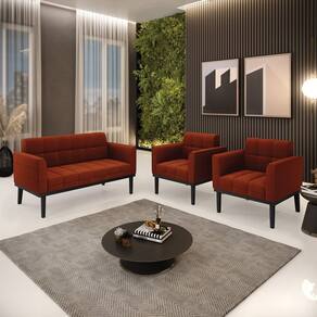 Você irá Receber: 01 Sofá Namoradeira e 02 Poltronas - Entregue em: 03 Volumes
