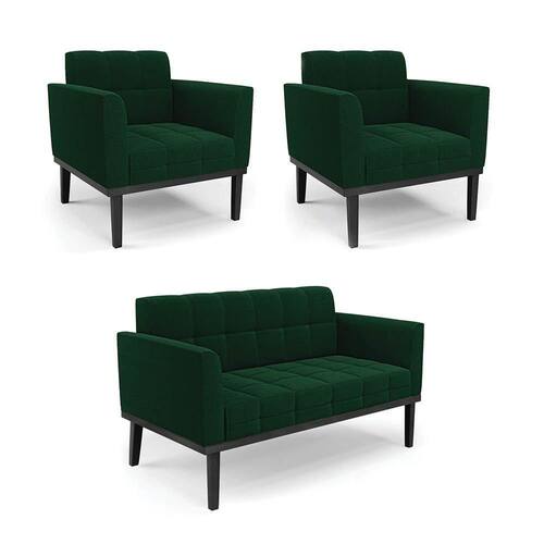 O Sofá Namoradeira e 2 Poltronas Elisa é uma mobília que combina elegância, conforto e durabilidade. Ele tem um design retrô e sofisticado, com Base de Madeira Fixa Preto e revestimento em tecido Bouclê Verde, que harmonizam com qualquer ambiente. Ele é ideal para sala de estar, recepções, escritórios, cozinhas ou qualquer outro espaço que você queira decorar com estilo e bom gosto. Ele tem uma estrutura em madeira de reflorestamento eucalipto, que garante a resistência e a sustentabilidade do produto. Ele suporta até 180 kg de peso, podendo ser utilizada por pessoas de diferentes biotipos. Ele tem um acabamento reforçado e espuma de qualidade D23, que oferece maciez e aconchego. Ele contém detalhes de costura no encosto e assento, resultando em um acabamento impecável, conferindo muito mais valor e elegância ao produto. O Sofá Namoradeira e 2 Poltronas Elisa é um móvel de alta qualidade, beleza e funcionalidade. Ele é fácil de transportar, pois tem um peso leve e um tamanho compacto. O Sofá Namoradeira e 2 Poltronas Elisa é um produto que vai fazer a diferença na sua decoração e no seu bem-estar. Ele vai trazer charme, conforto e durabilidade para o seu ambiente. Aproveite essa oferta e leve para casa um Sofá Namoradeira e 2 Poltronas de qualidade por um preço incrível. Essa é a sua chance de ter um Sofá Namoradeira e 2 Poltronas maravilhoso por um preço imperdível. Corra e garanta o seu antes que acabe o estoque!