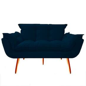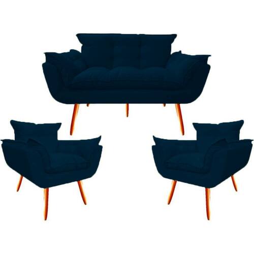 Namoradeira + 2 Poltronas Opalla Decorativa Reforçada Recepção Sala De Estar Suede - Azul Marinho