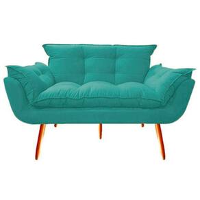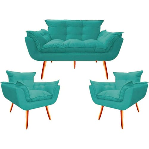 Namoradeira + 2 Poltronas Opalla Decorativa Reforçada Recepção Sala De Estar Suede - Azul