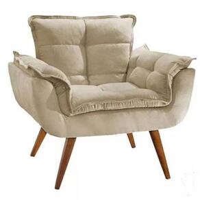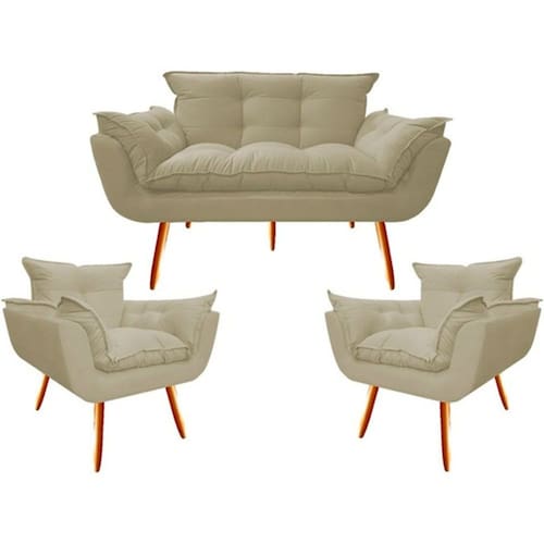 Namoradeira + 2 Poltronas Opalla Decorativa Reforçada Recepção Sala De Estar Suede - Bege