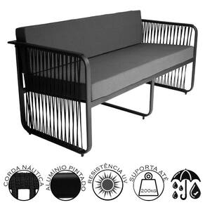 Namoradeira área Externa Alumínio Corda Náutica Santiago Preto/cinza A Namoradeira Santiago e ideal para quem busca elegancia, conforto e durabilidade. Feita artesanalmente, sua estrutura em aluminio garante leveza e resistencia, enquanto os detalhes em corda nautica adicionam um toque sofisticado ao design. Seu assento estofado com tecido impermeavel proporciona maximo conforto e praticidade, tornando-a ideal para areas gourmet, varandas, espacos de lazer e areas externas. Requientando seu espaco criando ambientes inesqueciveis para amigos e familiares.
