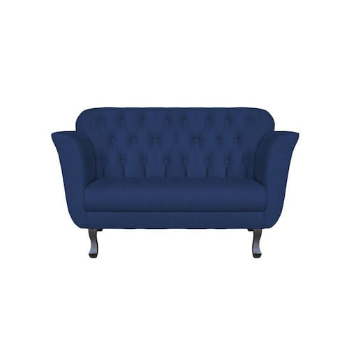 Namoradeira Decorativa Dália Suede Azul Marinho 2 Lugares Pés Madeira Mz Decor