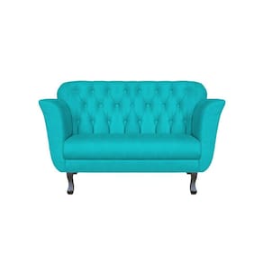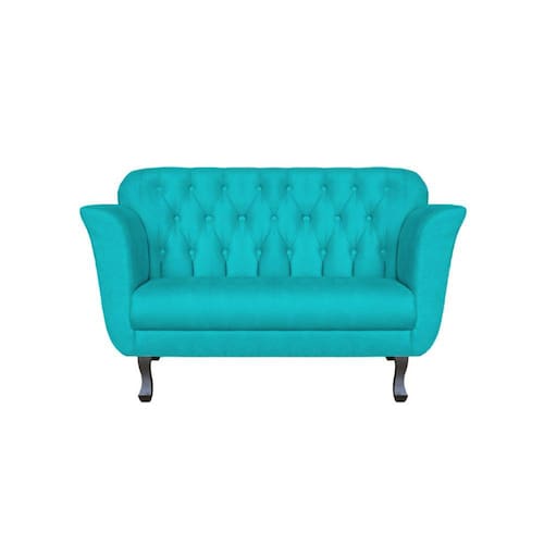 Namoradeira Decorativa Dália Suede Azul Tifany 2 Lugares Pés Madeira Ms Decor