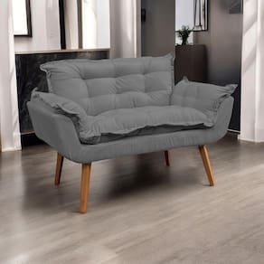Estrutura em madeira de eucalipto, garantindo durabilidade e resistência, revestimento em tecido suede, com toque macio e refinado, enchimento em fibra siliconada, proporcionando conforto excepcional e pés em madeira na tonalidade castanho, agregando charme e estabilidade.