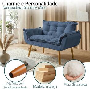 A Namoradeira Decorativa Alice foi cuidadosamente projetada para elevar a elegância e o conforto de qualquer ambiente. Seu design sofisticado e acolhedor adapta-se harmoniosamente a diferentes estilos de decoração, permitindo combinações com cores vibrantes ou neutras, além de objetos vintage ou contemporâneos. Uma peça versátil que transforma o espaço em um verdadeiro convite ao bem-estar.