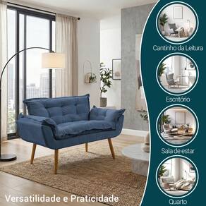 Namoradeira Decorativa Para Sala Recepção Consultório Escritório Manicure Alice Suede - Azul Marinho