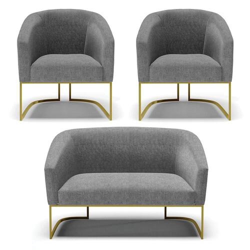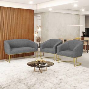 Você irá receber: 01 Sofá Namoradeira e 02 Poltronas - Entregue em: 03 Volumes
