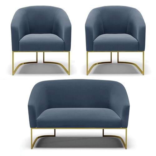 O Sofá Namoradeira 2 lugares e 2 Poltronas Stella é uma peça que combina elegância, conforto e durabilidade. Este conjunto tem um design moderno e sofisticado, com Base Industrial Dourado e revestimento em tecido Suede Azul Marinho, que harmonizam com qualquer ambiente. Ele é ideal para sala de estar, recepções, mesa de jantar ou qualquer outro espaço que você queira decorar com estilo e bom gosto. Ele tem uma estrutura em madeira de reflorestamento eucalipto, que garante a resistência e a sustentabilidade do produto. Ele suporta até 120 kg de peso, podendo ser utilizado por pessoas de diferentes biotipos. Ele tem um acabamento reforçado e espuma de qualidade D23, que oferece maciez e aconchego. Tem pés em aço carbono e pintura eletrostática, que protegem o produto contra corrosão e desgaste. Ele tem assento com persintas elásticas, que proporcionam flexibilidade e conforto. O kit Stella é um produto de alta qualidade, beleza e funcionalidade. Ele é fácil de transportar, pois tem um peso leve e um tamanho compacto. O Sofá Namoradeira 2 lugares e 2 Poltronas Stella é um produto que vai fazer a diferença na sua decoração e no seu bem-estar. Ele vai trazer charme, conforto e durabilidade para o seu ambiente. Aproveite essa oferta e leve para casa um Sofá Namoradeira 2 lugares e 2 Poltronas qualidade por um preço incrível. Essa é a sua chance de ter um kit maravilhoso por um preço imperdível. Corra e garanta seu Sofá Namoradeira 2 lugares e 2 Poltronas antes que acabe o estoque!