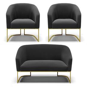 Namoradeira E 2 Poltronas Base Industrial Dourado Stella Suede D03 - D'rossi Cor Preto