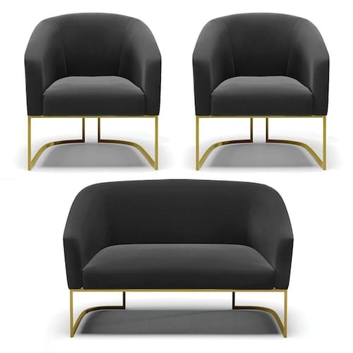 Você irá receber: 01 Sofá Namoradeira e 02 Poltronas - Entregue em: 03 Volumes
