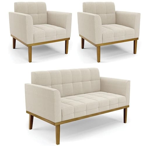 A Namoradeira e 2 Poltronas Base Madeira Castanho Ana Bouclé Bege, da Ibiza é o conjunto ideal para quem busca beleza, conforto e versatilidade. Você pode usar na sua Sala De Estar, recepção ou qualquer outro ambiente que desejar.