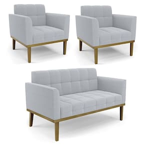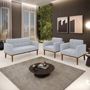A Namoradeira e 2 Poltronas Base Madeira Castanho Ana Bouclé Cinza, da Ibiza é o conjunto ideal para quem busca beleza, conforto e versatilidade. Você pode usar na sua Sala De Estar, recepção ou qualquer outro ambiente que desejar.