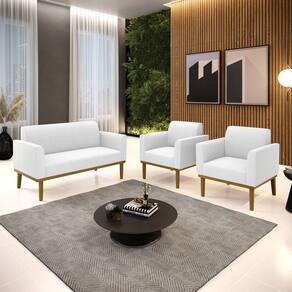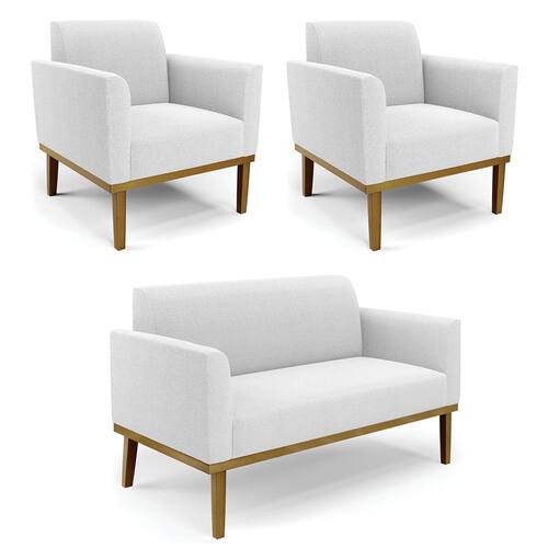 Namoradeira e 2 Poltronas Base Madeira Castanho Marisa Bouclê D03 - D`Rossi - Branco