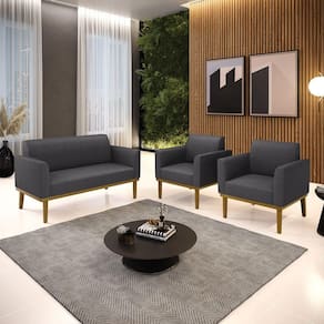 O Sofá Namoradeira e 2 Poltronas Marisa é a escolha perfeita para quem deseja unir conforto e comodidade em um estilo elegante. Com um design único, ele possui uma Base Industrial em Metal Castanho que harmoniza com o seu belíssimo tom Grafite, criando uma combinação elegante de conforto e estilo. Ele é perfeito para quem busca móveis que não só sejam bonitos, mas que também proporcionem bem-estar. Ideal para compor salas de estar, recepções, bibliotecas, salas de leitura, espaços de design e até áreas comerciais, essa peça versátil é pensada para ambientes que excluam beleza e aconchego. Sua estrutura, em madeira de reflorestamento de eucalipto, oferece resistência e sustentabilidade, suportando até 180 kg, garantindo segurança para usuários de diferentes biotipos. O conforto é outro destaque, com estofado em espuma prorelax D-23, que proporciona suporte e maciez ideais. Revestido em Bouclê, um tecido maleável e sofisticado, Sofá Namoradeira e 2 Poltronas Marisa segue a tendência do momento com um toque suave e quente, remetendo à textura natural da lã. Leve e fácil de transportar, Sofá Namoradeira e 2 Poltronas é um item que agrega charme e durabilidade ao seu espaço. Não perca a oportunidade de adquirir essa peça exclusiva que fará toda a diferença na sua decoração e no seu bem-estar. Aproveite agora! OBSERVAÇÃO IMPORTANTE: A é realizada no informado, não realizamos o para andares superiores, como subir escadas, elevadores ou guinchos. Não realizamos montagens, desmontagens ou instalações. Todos esses serviços são de responsabilidade do comprador. Dimensões do Sofá Namoradeira: Altura Total: 81 cm Largura Total: 114 cm Profundidade Total: 64 cm Altura do Encosto: 36 cm Largura do Assento: 96 cm Profundidade do Assento: 48 cm Altura do chão ao Assento: 45 cm Espessura do Braço: 9 cm Altura interna do Braço: 20 cm Espessura do Assento: 18 cm Tamanho dos pés: 30 cm Peso: 24 kg Dimensões do Poltrona: Altura Total: 81 cm Largura Total: 64 cm Profundidade Total: 64 cm Altura do Encosto: 36 cm Largura do Assento: 47 cm Profundidade do Assento: 48 cm Altura do chão ao Assento: 45 cm Espessura do Braço: 9 cm Altura interna do Braço: 20 cm Espessura do Assento: 18 cm Tamanho dos pés: 30 cm Peso: 18 kg Especificações do Produto: Estrutura: Madeira de Reflorestamento de Eucalipto Espuma: D-23 Tecido: Bouclê Peso Suportado: Até 180 Kg Tipo de Pés: Base Industrial Tipo de Encosto: Fixo Tipo de Assento: Fixo Complexidade da Montagem: Baixo Montagem: O produto vai montado, apenas parafusar a base : 90 dias contra de fabricação Instruções de Limpeza: Utilizar um pano limpo e levemente úmido Você irá Receber: 01 Sofá Namoradeira e 02 Poltronas - Entregue em: 03 Volumes