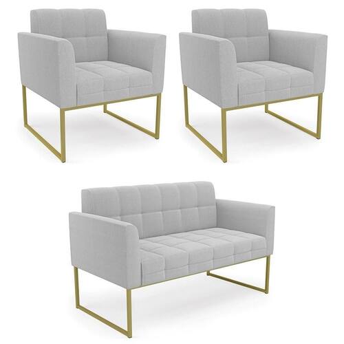 A Namoradeira e 2 Poltronas Industrial Dourado Ana Bouclé Cinza, da Ibiza é o conjunto ideal para quem busca beleza, conforto e versatilidade. Você pode usar na sua Sala De Estar, recepção ou qualquer outro ambiente que desejar.