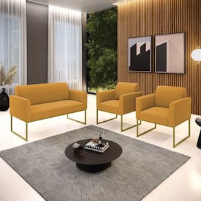O Sofá Namoradeira e 2 Poltronas Marisa é a escolha perfeita para quem deseja unir conforto e comodidade em um estilo elegante. Com um design único, ele possui uma Base Industrial em Metal Dourado que harmoniza com o seu belíssimo tom Mostarda, criando uma combinação elegante de conforto e estilo. Ele é perfeito para quem busca móveis que não só sejam bonitos, mas que também proporcionem bem-estar. Ideal para compor salas de estar, recepções, bibliotecas, salas de leitura, espaços de design e até áreas comerciais, essa peça versátil é pensada para ambientes que excluam beleza e aconchego. Sua estrutura, em madeira de reflorestamento de eucalipto, oferece resistência e sustentabilidade, suportando até 180 kg, garantindo segurança para usuários de diferentes biotipos. O conforto é outro destaque, com estofado em espuma prorelax D-23, que proporciona suporte e maciez ideais. Revestido em Bouclê, um tecido maleável e sofisticado, Sofá Namoradeira e 2 Poltronas Marisa segue a tendência do momento com um toque suave e quente, remetendo à textura natural da lã. Leve e fácil de transportar, Sofá Namoradeira e 2 Poltronas é um item que agrega charme e durabilidade ao seu espaço. Não perca a oportunidade de adquirir essa peça exclusiva que fará toda a diferença na sua decoração e no seu bem-estar. Aproveite agora!OBSERVAÇÃO IMPORTANTE: A é realizada no informado, não realizamos o para andares superiores, como subir escadas, elevadores ou guinchos. Não realizamos montagens, desmontagens ou instalações. Todos esses serviços são de responsabilidade do comprador. Dimensões do Sofá Namoradeira: Altura Total: 81 cm Largura Total: 114 cm Profundidade Total: 64 cm Altura do Encosto: 36 cm Largura do Assento: 96 cm Profundidade do Assento: 48 cm Altura do chão ao Assento: 45 cm Espessura do Braço: 9 cm Altura interna do Braço: 20 cm Espessura do Assento: 18 cm Tamanho dos pés: 30 cm Peso: 20 kg Dimensões do Poltrona: Altura Total: 81 cm Largura Total: 64 cm Profundidade Total: 64 cm Altura do Encosto: 36 cm Largura do Assento: 47 cm Profundidade do Assento: 48 cm Altura do chão ao Assento: 45 cm Espessura do Braço: 9 cm Altura interna do Braço: 20 cm Espessura do Assento: 18 cm Tamanho dos pés: 30 cm Peso: 16 kg Especificações do Produto: Estrutura: Madeira de Reflorestamento de Eucalipto Espuma: D-23 Tecido: Bouclê Peso Suportado: Até 180 Kg Tipo de Pés: Base IndustrialTipo de Encosto: Fixo Tipo de Assento: Fixo Complexidade da Montagem: Baixo Montagem: O produto vai montado, apenas parafusar a base : 90 dias contra de fabricação Instruções de Limpeza: Utilizar um pano limpo e levemente úmido Você irá Receber: 01 Sofá Namoradeira e 02 Poltronas - Entregue em: 03 Volumes