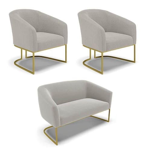 Tem novidades chegando por aqui! Olha só essa nossa inéditaNamoradeira e 2 Poltronas Stella Bouclê. Sim, as melhores opções em Namoradeira estão aqui! A Namoradeira e 2 Poltronas Stella Bouclê é para todas as ocasiões, é ideal para você relaxar, assistir tv ou ler um livro, mantendo-o confortável ao longo do dia! Um estofado versátil, que foge do convencional pelo seu design e tecido luxuoso. Seu formato curvo, marcante e sofisticado, oferece conforto de forma excepcional, com aquela sensação de abraço, que deixa o coração quentinho! Desenvolvida com atenção aos detalhes, para atender todas suas expectativas e necessidades. Seu aspecto arredondado e anatômico, possibilita que a postura fique sempre alinhada, mantendo a coluna na posição correta. Ela dispõe de um acabamento impecável, revestida em Bouclê em tom Cinza, um tecido maleável que além de ser muito bonito, é a grande tendência do momento, por ser uma lã mais refinada, quente, com toque suave e agradável, semelhante à textura natural da ovelha. Contém uma estrutura robusta, sua sustentação é dada pela Base Industrial no tom Dourado, que garantem mais segurança e firmeza ao sentar-se. Já o enchimento é feito em espuma D-23 no encosto e assento, garantindo maior conforto ao usuário. Ah! Vale a pena lembrar que a Namoradeira e 2 Poltronas Stella Bouclê, foi produzida em quantidades limitadas, para aqueles que procuram criar um visual diferenciado e exclusivo. Então, não deixe de aproveitar esse lançamento, hem! Leve a sua agora mesmo.