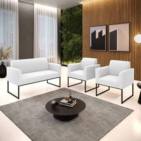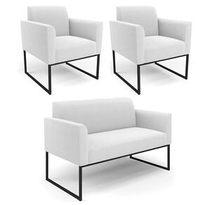 Namoradeira e 2 Poltronas Industrial Preto Marisa Bouclê D03 - D`Rossi - Branco