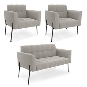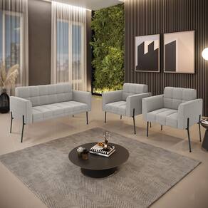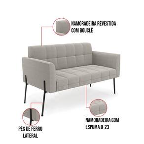 O Sofá Namoradeira e 2 Poltronas Elisa é uma mobília que combina elegância, conforto e durabilidade. Ele tem um design retrô e sofisticado, com Pés Laterais de Ferro Preto e revestimento em tecido Bouclê. Ele é ideal para sala de estar, recepções, escritórios, cozinhas ou qualquer outro espaço que você queira decorar com estilo e bom gosto. Ele tem uma estrutura em madeira de reflorestamento eucalipto, que garante a resistência e a sustentabilidade do produto. Ele suporta até 180 kg de peso, podendo ser utilizada por pessoas de diferentes biotipos. Ele tem um acabamento reforçado e espuma de qualidade D23, que oferece maciez e aconchego. Ele contém detalhes de costura no encosto e assento, resultando em um acabamento impecável, conferindo muito mais valor e elegância ao produto. O Sofá Namoradeira e 2 Poltronas Elisa é um móvel de alta qualidade, beleza e funcionalidade. Ele é fácil de transportar, pois tem um peso leve e um tamanho compacto. O Sofá Namoradeira e 2 Poltronas Elisa é um produto que vai fazer a diferença na sua decoração e no seu bem-estar. Ele vai trazer charme, conforto e durabilidade para o seu ambiente. Aproveite essa oferta e leve para casa um Sofá Namoradeira e 2 Poltronas de qualidade por um preço incrível. Essa é a sua chance de ter um Sofá Namoradeira e 2 Poltronas maravilhoso por um preço imperdível. Corra e garanta o seu antes que acabe o estoque!