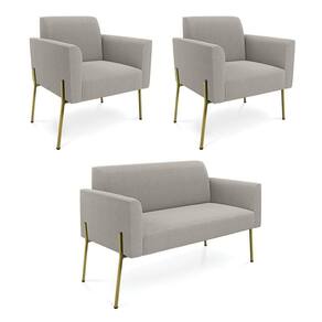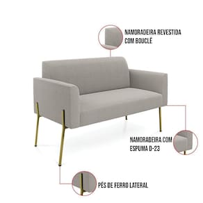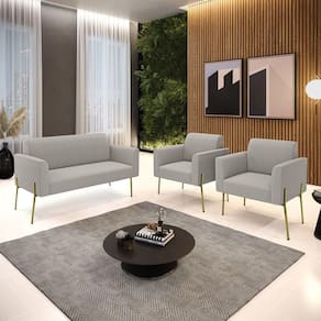 O Sofá Namoradeira e 2 Poltronas Marisa é a escolha perfeita para quem deseja unir conforto e comodidade em um estilo elegante. Com um design único, ele possui Pés de Ferro Lateral Dourado que harmoniza com o seu belíssimo tom Cinza, criando uma combinação elegante de conforto e estilo. Ele é perfeito para quem busca móveis que não só sejam bonitos, mas que também proporcionem bem-estar. Ideal para compor salas de estar, recepções, bibliotecas, salas de leitura, espaços de design e até áreas comerciais, essa peça versátil é pensada para ambientes que excluam beleza e aconchego. Sua estrutura, em madeira de reflorestamento de eucalipto, oferece resistência e sustentabilidade, suportando até 180 kg, garantindo segurança para usuários de diferentes biotipos. O conforto é outro destaque, com estofado em espuma prorelax D-23, que proporciona suporte e maciez ideais. Revestido em Bouclê, um tecido maleável e sofisticado, Sofá Namoradeira e 2 Poltronas Marisa segue a tendência do momento com um toque suave e quente, remetendo à textura natural da lã. Leve e fácil de transportar, Sofá Namoradeira e 2 Poltronas é um item que agrega charme e durabilidade ao seu espaço. Não perca a oportunidade de adquirir essa peça exclusiva que fará toda a diferença na sua decoração e no seu bem-estar. Aproveite agora e garanta o seu antes que o estoque acabe! OBSERVAÇÃO IMPORTANTE: A é realizada no informado, não realizamos o para andares superiores, como subir escadas, elevadores ou guinchos. Não realizamos montagens, desmontagens ou instalações. Todos esses serviços são de responsabilidade do comprador. Dimensões do Sofá Namoradeira: Altura Total: 81 cm Largura Total: 114 cm Profundidade Total: 64 cm Altura do Encosto: 36 cm Largura do Assento: 96 cm Profundidade do Assento: 48 cm Altura do chão ao Assento: 45 cm Espessura do Braço: 9 cm Altura interna do Braço: 20 cm Espessura do Assento: 18 cm Tamanho dos pés: 30 cm Peso: 24 kg Dimensões do Poltrona: Altura Total: 81 cm Largura Total: 64 cm Profundidade Total: 64 cm Altura do Encosto: 36 cm Largura do Assento: 47 cm Profundidade do Assento: 48 cm Altura do chão ao Assento: 45 cm Espessura do Braço: 9 cm Altura interna do Braço: 20 cm Espessura do Assento: 18 cm Tamanho dos pés: 30 cm Peso: 14 kg Especificações do Produto: Estrutura: Madeira de Reflorestamento de Eucalipto Espuma: D-23 Tecido: Bouclê Peso Suportado: Até 180 Kg Tipo de Pés: Pés de Ferro Tipo de Encosto: Fixo Tipo de Assento: Fixo Complexidade da Montagem: Baixo Montagem: O produto vai montado, apenas parafusar a base : 90 dias contra de fabricação Instruções de Limpeza: Utilizar um pano limpo e levemente úmido Você irá Receber: 01 Sofá Namoradeira e 02 Poltronas - Entregue em: 03 Volumes