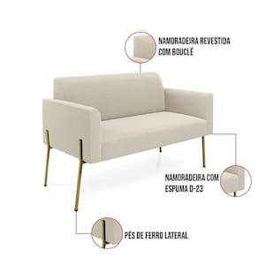 O Sofá Namoradeira e 2 Poltronas Marisa é a escolha perfeita para quem deseja unir conforto e comodidade em um estilo elegante. Com um design único, ele possui Pés de Ferro Lateral Dourado que harmoniza com o seu belíssimo tom, criando uma combinação elegante de conforto e estilo. Ele é perfeito para quem busca móveis que não só sejam bonitos, mas que também proporcionem bem-estar. Ideal para compor salas de estar, recepções, bibliotecas, salas de leitura, espaços de design e até áreas comerciais, essa peça versátil é pensada para ambientes que excluam beleza e aconchego. Sua estrutura, em madeira de reflorestamento de eucalipto, oferece resistência e sustentabilidade, suportando até 180 kg, garantindo segurança para usuários de diferentes biotipos. O conforto é outro destaque, com estofado em espuma prorelax D-23, que proporciona suporte e maciez ideais. Revestido em Bouclê, um tecido maleável e sofisticado, Sofá Namoradeira e 2 Poltronas Marisa segue a tendência do momento com um toque suave e quente, remetendo à textura natural da lã. Leve e fácil de transportar, Sofá Namoradeira e 2 Poltronas é um item que agrega charme e durabilidade ao seu espaço. Não perca a oportunidade de adquirir essa peça exclusiva que fará toda a diferença na sua decoração e no seu bem-estar. Aproveite agora e garanta o seu antes que o estoque acabe!