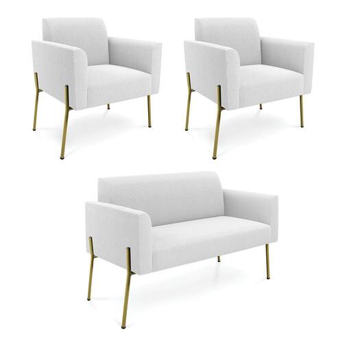 O Sofá Namoradeira e 2 Poltronas Marisa é a escolha perfeita para quem deseja unir conforto e comodidade em um estilo elegante. Com um design único, ele possui Pés de Ferro Lateral Dourado que harmoniza com o seu belíssimo tom, criando uma combinação elegante de conforto e estilo. Ele é perfeito para quem busca móveis que não só sejam bonitos, mas que também proporcionem bem-estar. Ideal para compor salas de estar, recepções, bibliotecas, salas de leitura, espaços de design e até áreas comerciais, essa peça versátil é pensada para ambientes que excluam beleza e aconchego. Sua estrutura, em madeira de reflorestamento de eucalipto, oferece resistência e sustentabilidade, suportando até 180 kg, garantindo segurança para usuários de diferentes biotipos. O conforto é outro destaque, com estofado em espuma prorelax D-23, que proporciona suporte e maciez ideais. Revestido em Bouclê, um tecido maleável e sofisticado, Sofá Namoradeira e 2 Poltronas Marisa segue a tendência do momento com um toque suave e quente, remetendo à textura natural da lã. Leve e fácil de transportar, Sofá Namoradeira e 2 Poltronas é um item que agrega charme e durabilidade ao seu espaço. Não perca a oportunidade de adquirir essa peça exclusiva que fará toda a diferença na sua decoração e no seu bem-estar. Aproveite agora e garanta o seu antes que o estoque acabe!