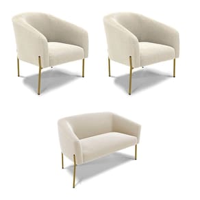 Tem novidades chegando por aqui! Olha só essa nossa inéditaNamoradeira e 2 Poltronas Stella Bouclê. Sim, as melhores opções em Namoradeira estão aqui! A Namoradeira e 2 Poltronas Stella Bouclê é para todas as ocasiões, é ideal para você relaxar, assistir tv ou ler um livro, mantendo-o confortável ao longo do dia! Um estofado versátil, que foge do convencional pelo seu design e tecido luxuoso. Seu formato curvo, marcante e sofisticado, oferece conforto de forma excepcional, com aquela sensação de abraço, que deixa o coração quentinho! Desenvolvida com atenção aos detalhes, para atender todas suas expectativas e necessidades. Seu aspecto arredondado e anatômico, possibilita que a postura fique sempre alinhada, mantendo a coluna na posição correta. Ela dispõe de um acabamento impecável, revestida em Bouclê em tom Bege, um tecido maleável que além de ser muito bonito, é a grande tendência do momento, por ser uma lã mais refinada, quente, com toque suave e agradável, semelhante à textura natural da ovelha. Contém uma estrutura robusta, sua sustentação é dada pelos Pés de Ferro no tom Dourado, que garantem mais segurança e firmeza ao sentar-se. Já o enchimento é feito em espuma D-23 no encosto e assento, garantindo maior conforto ao usuário. Ah! Vale a pena lembrar que a Namoradeira e 2 Poltronas Stella Bouclê, foi produzida em quantidades limitadas, para aqueles que procuram criar um visual diferenciado e exclusivo. Então, não deixe de aproveitar esse lançamento, hem! Leve a sua agora mesmo.