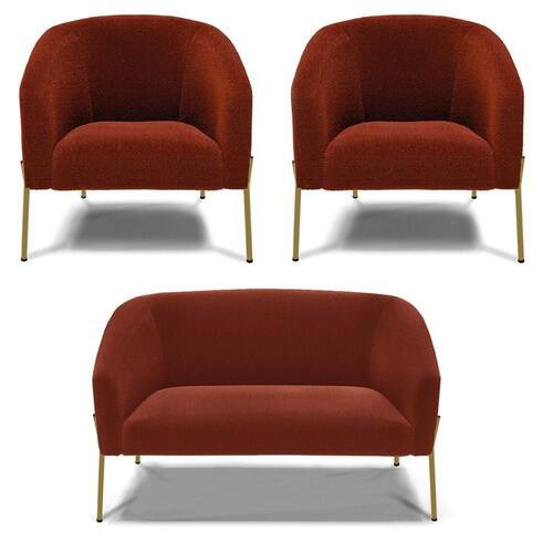 Tem novidades chegando por aqui! Olha só essa nossa inéditaNamoradeira e 2 Poltronas Stella Bouclê. Sim, as melhores opções em Namoradeira estão aqui! A Namoradeira e 2 Poltronas Stella Bouclê é para todas as ocasiões, é ideal para você relaxar, assistir tv ou ler um livro, mantendo-o confortável ao longo do dia! Um estofado versátil, que foge do convencional pelo seu design e tecido luxuoso. Seu formato curvo, marcante e sofisticado, oferece conforto de forma excepcional, com aquela sensação de abraço, que deixa o coração quentinho! Desenvolvida com atenção aos detalhes, para atender todas suas expectativas e necessidades. Seu aspecto arredondado e anatômico, possibilita que a postura fique sempre alinhada, mantendo a coluna na posição correta. Ela dispõe de um acabamento impecável, revestida em Bouclê em tom Terra, um tecido maleável que além de ser muito bonito, é a grande tendência do momento, por ser uma lã mais refinada, quente, com toque suave e agradável, semelhante à textura natural da ovelha. Contém uma estrutura robusta, sua sustentação é dada pelos Pés de Ferro no tom Dourado, que garantem mais segurança e firmeza ao sentar-se. Já o enchimento é feito em espuma D-23 no encosto e assento, garantindo maior conforto ao usuário. Ah! Vale a pena lembrar que a Namoradeira e 2 Poltronas Stella Bouclê, foi produzida em quantidades limitadas, para aqueles que procuram criar um visual diferenciado e exclusivo. Então, não deixe de aproveitar esse lançamento, hem! Leve a sua agora mesmo.