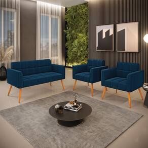 O Sofá Namoradeira e 2 Poltronas Elisa é uma mobília que combina elegância, conforto e durabilidade. Ele tem um design retrô e sofisticado, com Pés Palito Castanho e revestimento em tecido Bouclê Azul, que harmonizam com qualquer ambiente. Ele é ideal para sala de estar, recepções, escritórios, cozinhas ou qualquer outro espaço que você queira decorar com estilo e bom gosto. Ele tem uma estrutura em madeira de reflorestamento eucalipto, que garante a resistência e a sustentabilidade do produto. Ele suporta até 180 kg de peso, podendo ser utilizada por pessoas de diferentes biotipos. Ele tem um acabamento reforçado e espuma de qualidade D23, que oferece maciez e aconchego. Ele contém detalhes de costura no encosto e assento, resultando em um acabamento impecável, conferindo muito mais valor e elegância ao produto. O Sofá Namoradeira e 2 Poltronas Elisa é um móvel de alta qualidade, beleza e funcionalidade. Ele é fácil de transportar, pois tem um peso leve e um tamanho compacto. O Sofá Namoradeira e 2 Poltronas Elisa é um produto que vai fazer a diferença na sua decoração e no seu bem-estar. Ele vai trazer charme, conforto e durabilidade para o seu ambiente. Aproveite essa oferta e leve para casa um Sofá Namoradeira e 2 Poltronas de qualidade por um preço incrível. Essa é a sua chance de ter um Sofá Namoradeira e 2 Poltronas maravilhoso por um preço imperdível. Corra e garanta o seu antes que acabe o estoque!