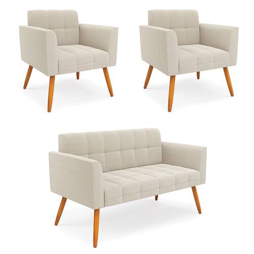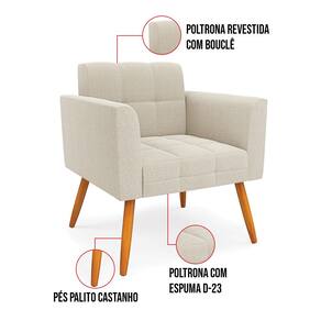 O Sofá Namoradeira e 2 Poltronas Elisa é uma mobília que combina elegância, conforto e durabilidade. Ele tem um design retrô e sofisticado, com Pés Palito Castanho e revestimento em tecido Bouclê. Ele é ideal para sala de estar, recepções, escritórios, cozinhas ou qualquer outro espaço que você queira decorar com estilo e bom gosto. Ele tem uma estrutura em madeira de reflorestamento eucalipto, que garante a resistência e a sustentabilidade do produto. Ele suporta até 180 kg de peso, podendo ser utilizada por pessoas de diferentes biotipos. Ele tem um acabamento reforçado e espuma de qualidade D23, que oferece maciez e aconchego. Ele contém detalhes de costura no encosto e assento, resultando em um acabamento impecável, conferindo muito mais valor e elegância ao produto. O Sofá Namoradeira e 2 Poltronas Elisa é um móvel de alta qualidade, beleza e funcionalidade. Ele é fácil de transportar, pois tem um peso leve e um tamanho compacto. O Sofá Namoradeira e 2 Poltronas Elisa é um produto que vai fazer a diferença na sua decoração e no seu bem-estar. Ele vai trazer charme, conforto e durabilidade para o seu ambiente. Aproveite essa oferta e leve para casa um Sofá Namoradeira e 2 Poltronas de qualidade por um preço incrível. Essa é a sua chance de ter um Sofá Namoradeira e 2 Poltronas maravilhoso por um preço imperdível. Corra e garanta o seu antes que acabe o estoque!